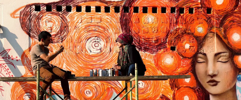 A group of graffiti artists (all young women) painted orange murals in Zone 18 in Guatemala City in support of UN Women and the UNiTE campaign to End Violence against Women. Photo: UN Women/Carlos Rivera