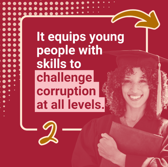 - Education teaches values of transparency, accountability and integrity from an early age.